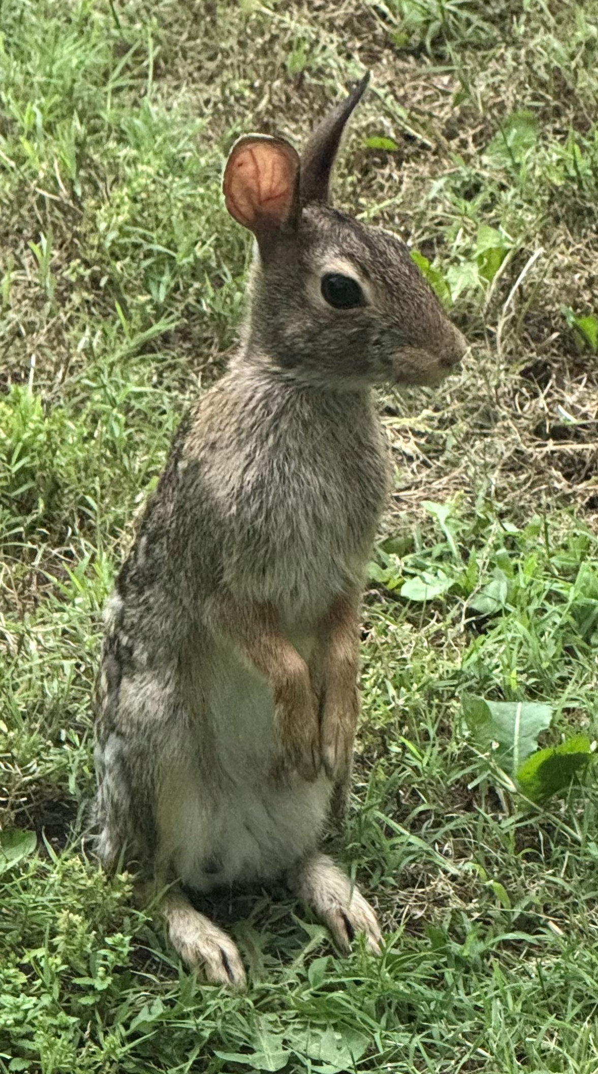 I've been oscillating all Spring on an action plan to limit the damage caused to my roses by a particularly prolific passel of rabbits in my garden. At one point, a few weeks back, I recall looking out my back window and counting no fewer than 4 bunnies visible in my field of view (which likely doesn't even come close to the number that were hiding). Bunnies, as many here are aware, don't eat daylilies or weeds or Wild Lettuce or native forbs, they preferentially eat, to my chagrin, roses, and go after the young tender ones first! When several young rose starts were pruned almost to the ground, I briefly contemplated ventilating their circulatory and respiratory systems with solid lead deterrents, but instead chose to spend $28 on a 25 foot spool of galvanized wire and made these protective cages, 11 of them so far. I'll report back on how they work in the long run, but so far they seem to be keeping the rabbits away.I was even more alarmed at finding this sight one morning; I've been watching this hollyhock patch daily, anticipating a fabulous bloom, but obviously another creature viewed it as an "all you can chomp" smorgasbord. A creature measuring about 4 foot tall at the mouth and one that I suspect is hooved, with velvet lips and a fluffy white tail. The very sight panicked me, for this is just one "clump" in a large area of self-seeded hollyhocks, all otherwise healthy and forming some large delicate blooms. I was counting on this patch to give me a luscious, even heavenly, hollyhock display, and now I was looking at the potential destruction of all of it, within a few nights, just bare stems and sadness left behind. Should I stay awake all night with flashlights and a rifle at hand? Keep pots and pans handy to startle them away? Hang soap and garlic from some stakes in the area? Build a 10 foot tall peripheral fence topped with barbed wire and mined for 30 feet into the prairie?